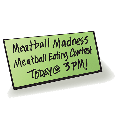 2.Meatball Eating Contest: During summer, Michael supports a local children’s hospital burn unit by hosting a craft market in his parking lot. On a Saturday, he invites local vendors to pitch their tents and display their wares. To guarantee news coverage, Michael added a high-energy Coney Island-style “Meatball Eating Contest” as the finale. Booth and contestant fees raise several thousand dollars for charity!